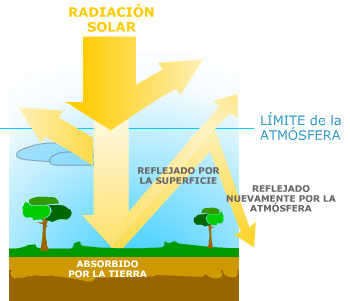 - La superficie de la Tierra es calentada por el Sol. Pero ésta no absorbe toda la energía sino que refleja parte de ella de vuelta hacia la atmósfera.